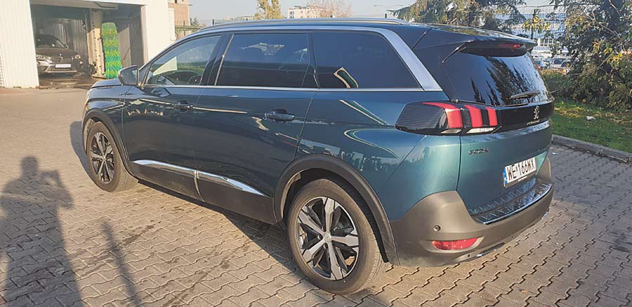Z zewnątrz, szczególnie z tyłu, 5008 przypomina nieco Range Rovera Evoque i absolutnie nie jest to zarzut, bo styl ten to bardzo udane połączenie elegancji, dynamiki i potęgi. Przód to już klasyczny Peugeot z olbrzymim zderzakiem, cofniętą pokrywą silnika, wielkim grillem i skośnymi, reflektorami.