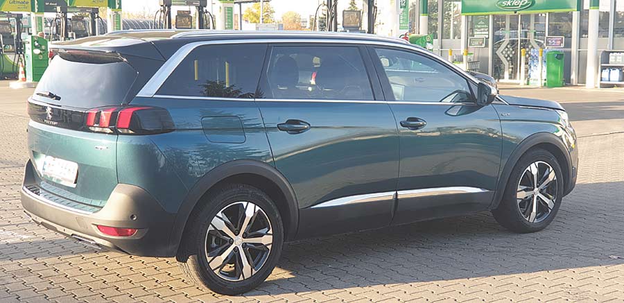 Za rozpędzanie 5008 odpowiadał doładowany diesel o pojemności 2 litrów generujący moc 180 KM, która była przenoszona tylko na przednią oś za pomocą 6-biegowej przekładni automatycznej. Sprint do setki trwał ok. 9 sekund, a prędkość maksymalna to 208 km/h. Katalogowe średnie spalanie to 4,8 lita. Nam w teście Peugeot „łykał” trochę więcej, bo ok. 7 litrów ropy, ale trzeba przyznać, że niezbyt delikatnie obchodziliśmy się z pedałem przyspieszenia.