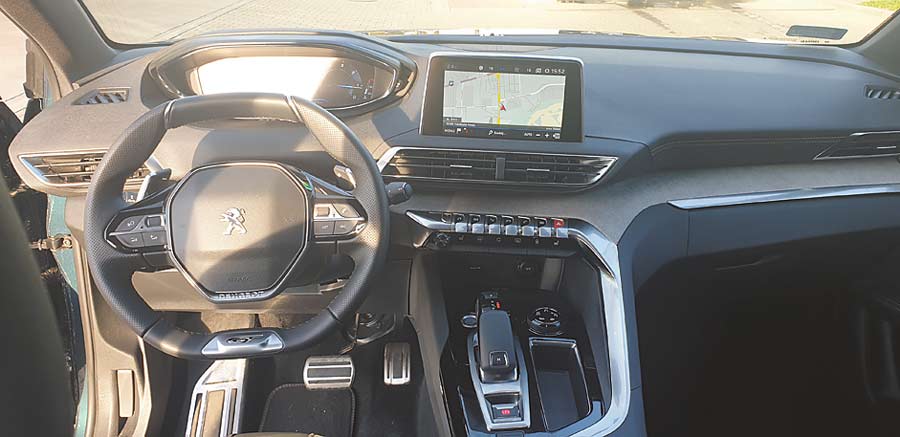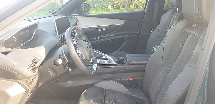 Plastiki użyte do budowy wnętrza są miękkie, wstawki na drzwiach i niektórych elementach deski rozdzielczej dbają, by kabina była nie tylko przytulna, ale i elegancka. O komfort kierowcy i pasażera dbają skórzane fotele z możliwością masażu. I nie jest to funkcja znana od lat polegająca na pulsacyjnym pompowaniu odcinka lędźwiowego. Peugeot poszedł dalej i podzielił oparcie fotela na 8 uciskowych części. W ustawieniach mamy do wyboru 5 trybów masażu i trzeba przyznać, że jest to pierwsza taka funkcja w samochodzie, która nie irytuje, a sprawia autentyczną przyjemność.