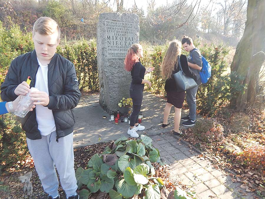 Młodzież ze swoim wychowawcą udała się pod obelisk dowódcy oddziału z powstania styczniowego 1863-1864 Mikołaja Nieczaja znajdujący się przy ul. Rejowieckiej. Uczniowie uporządkowali grób, a nauczyciel opowiedział im o historii powstańca. (k)