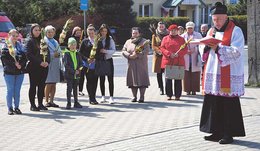 Świętowanie rozpoczęto przy pomniku w Żółkiewce, gdzie zgromadzili się parafianie: osoby starsze, dorośli i dzieci. Uroczystego poświęcenia palm dokonał ksiądz proboszcz Marian Wiech, po czym w uformowanej procesji wszyscy ruszyli do kościoła pw. Świętego Wawrzyńca w Żółkiewce. (k)