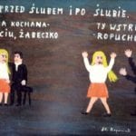 Obrazkami zainteresowała się około siedmioletnia dziewczynka. – Zapytałem czy jej się podobają. Odpowiedziała, że tak, ale nie ma pieniążków. Dałem jej więc te obrazy. Żonie w domu powiedziałem, że obrazy sprzedałem, ale dużo nie wziąłem za nie, bo to pierwsze malarstwo. Żona odpowiedziała, że w takim razie utarg za warzywa będzie dla niej, a za obrazy dla mnie – śmieje się Koguciuk.