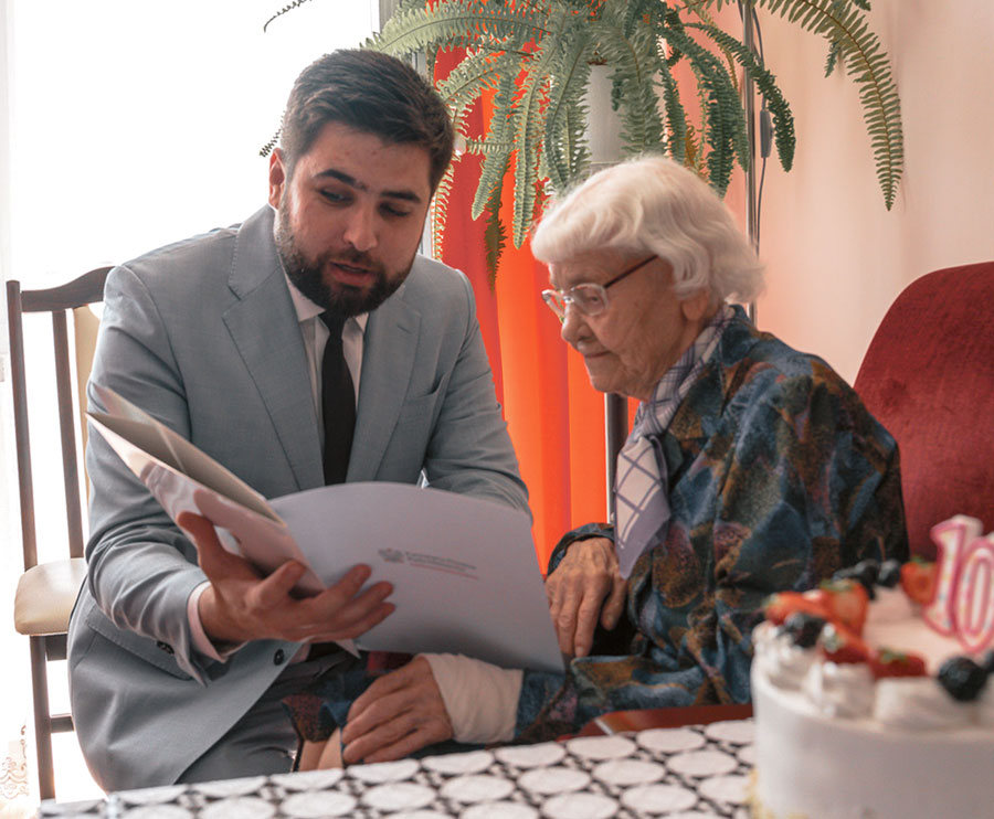 Z tej okazji Jubilatkę odwiedzili prezydent miasta Jakub Banaszek, dyrektor Departamentu Spraw Obywatelskich UM Chełm Dorota Betka oraz dyrektor Miejskiego Ośrodka Pomocy Rodzinie Anna Szalast. Goście przekazali życzenia zdrowia, spokoju oraz wielu kolejnych lat w gronie kochającej rodziny.