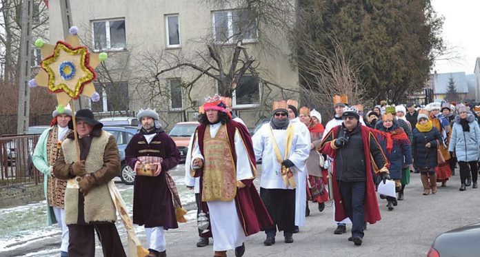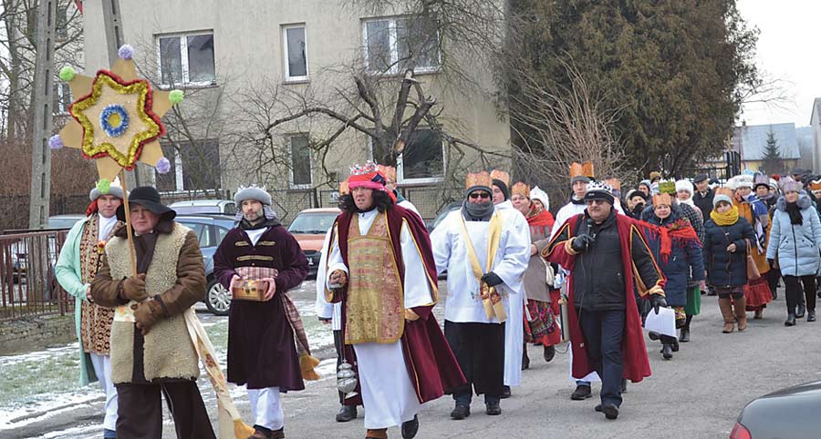 W orszaku wzięli udział: księża, przedstawiciele władz gminy, lokalne zespoły, dzieci ze Szkoły Podstawowej, myśliwi, koła gospodyń wiejskich i wszyscy mieszkańcy gminy. Orszak przeszedł ulicą Cichą, Główną i Rynkową. Po okrążeniu rynku wszyscy udali się na mszę świętą do kościoła. Uroczystą mszę świętą odprawił ks. Krzysztof Adamowski. Po liturgii zebrani udali się do CSK, gdzie połamano się opłatkiem. (k)