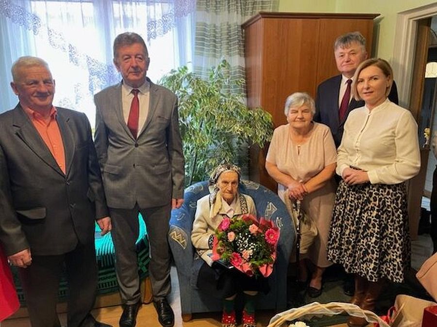 Z okazji setnych urodzin życzenia pani Anieli złożyli wójt gminy Siennica Różana Leszek Proskura, starosta krasnostawski Andrzej Leńczuk i kierownik placówki terenowej KRUS w Krasnymstawie Justyna Przysiężniak.