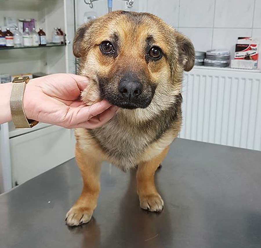 Kundelek porzucony na klatce schodowej jednego z bloków w Krasnymstawie, szuka kogoś, kto da mu dom.