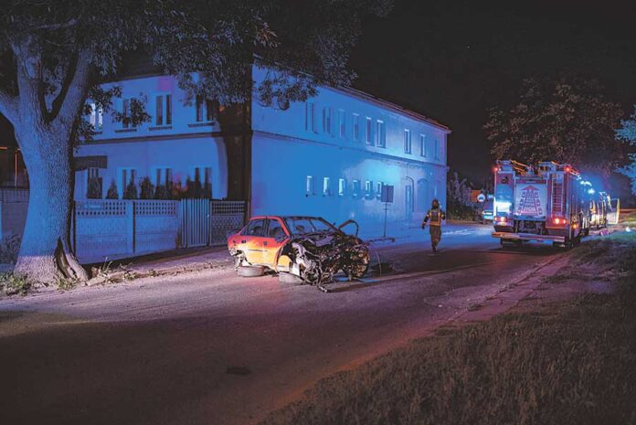 Skierowani na miejsce policjanci ustalili, że oplem jechała czwórka młodych ludzi. Kierował 22-latek z gminy Ruda-Huta. Był pijany w sztok (miał 2 promile alkoholu w organizmie). W takim stanie szybko stracił panowanie nad pojazdem. Auto wypadło z drogi, uderzyło w drzewo i zatrzymało się około kilkaset metrów dalej.