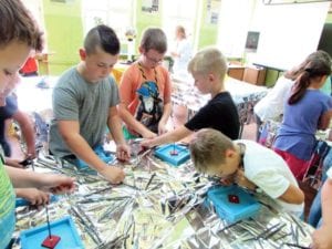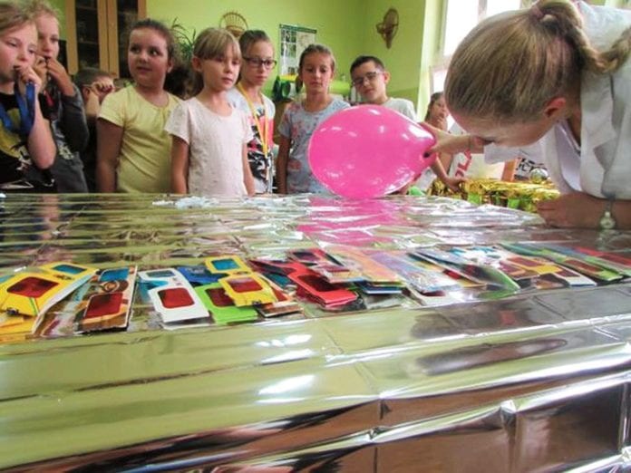 Uczniowie klas II-VI szkoły SP nr 1 wzięli udział w zajęciach z chemii i fizyki. Największy zachwyt wzbudziła u nich prezentacja eksperymentów i doświadczeń z zastosowaniem suchego lodu i ciekłego azotu. Po wspólnych pokazach uczniowie, podzieleni na mniejsze grupy, uczestniczyli w warsztatach z robotyki i programowania robotów przy wykorzystaniu klocków LEGO oraz zajęciach z wykorzystaniem generatora Van de Graaffa, elektryzujących balonów, złudzeń optycznych, obrazów 3D czy cieczy nienewtonowskiej. (k)