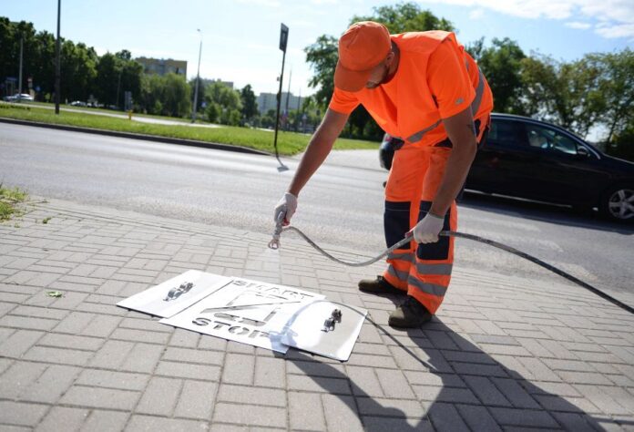 – Piktogramy przypominają o konieczności skoncentrowania się na przechodzeniu przez jezdnię – mówi Bartłomiej Pejo, wicestarosta świdnicki. – Tylko w pierwszym dniu akcji wymalowaliśmy ponad 70 znaków.