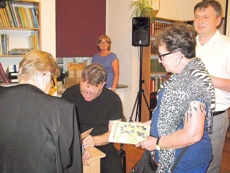Książka Zygmuntowicza pt. Ziemia o ludzkiej twarzy – szlakiem romantyków i pozytywistów to efekt wyprawy rowerem po wschodniej Polsce. – Z przygody tej powstał nietypowy przewodnik turystyczny – mówi Dorota Korkosz z PBP. – W każdym rozdziale książki przeczytamy relację z kolejnego etapu wyprawy, ciekawą historię spotkanych po drodze nietuzinkowych osób, anegdoty nawiązujące tematycznie bądź sytuacyjnie do miejsc i regionów przez nich zamieszkiwanych, a także bibliografię wraz z wykazem polecanych przez autora stron internetowych – dodaje. Autor gościł również w Krasnymstawie, gdzie spotkał się ze Zbigniewem Atrasem. Podziękowania za spotkanie w imieniu samorządu powiatu przekazała Zygmuntowiczowi Aleksandra Stachula, a w imieniu samorządu miasta sekretarz Krzysztof