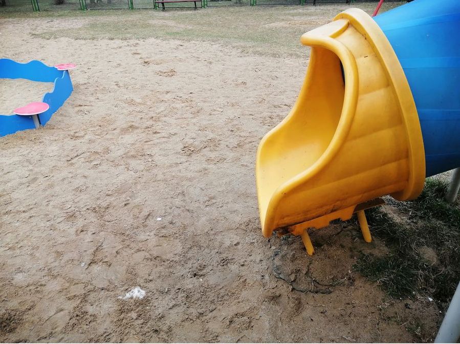 Najbardziej problematyczne jest niebezpieczne zakończenie jednej ze ślizgawek. Z powodu uszkodzenia jednego z elementów urządzenie w ubiegłym roku zostało skrócone i kończy się wprost na betonowym elemencie konstrukcyjnym, który pozostał w ziemi po demontażu wcześniejszego przęsła.