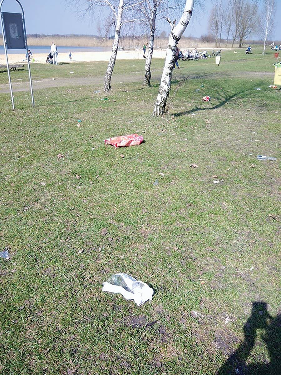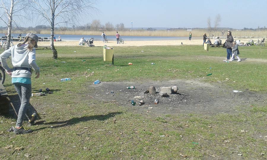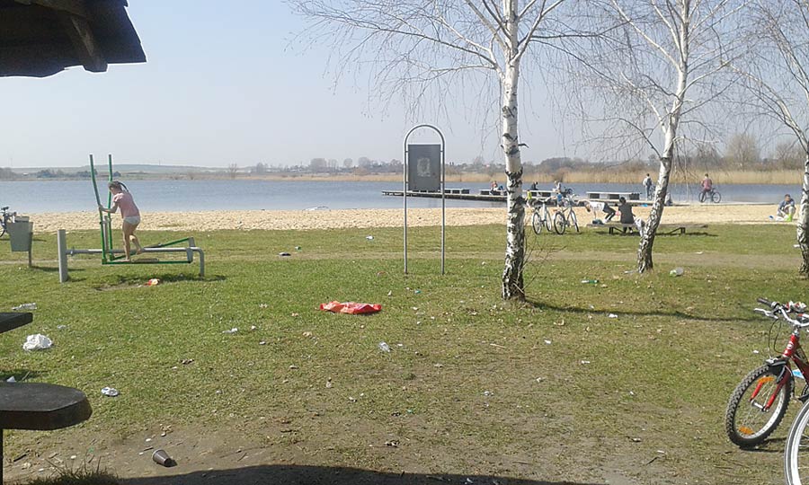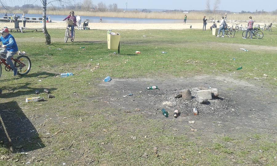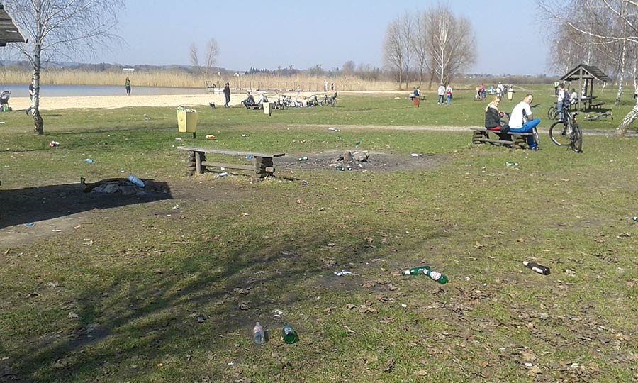 Walające się śmieci i kompletny bałagan – tak wyglądał teren wokół zalewu po drugim weekendzie kwietnia. Ciągnący nad wodę z naręczem butelek z piwem, napojami, kilogramami kiełbasy na grilla, chipsami i słodyczami plażowicze nie narzekali na ciężar siatek. Za to w drodze powrotnej nie mieli już sił, by zabrać puste opakowania. Wyrzucenie resztek do pobliskich śmietniczek też przerosło ich możliwości.