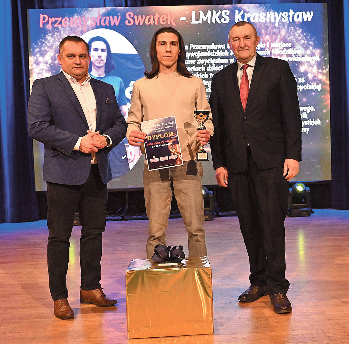 Gratulując laureatom, wskazał, że stanowią inspirację dla młodego pokolenia i dowód na to, że konsekwencja oraz wiara w siebie prowadzą do realizacji ambitnych celów. Kulminacyjnym punktem programu było wręczenie nagród dla najlepszych przedstawicieli sportu we wspominanych kategoriach. Sportowcem Roku 2025 w kat. do lat 15 została pływaczka Zuzanna Zdybel z Wodnika Krasnystaw. Kolejne lokaty zajęli: 2. Mateusz Matysiak (LMKS Krasnystaw), 3. Maciej Szymański (LMKS Krasnystaw), 4. Dagmara Hałas i Elena Nowosad (UKS Songo Taekwondo), 5. Jakub Dulak (LMKS Krasnystaw), 6. Lena Tarczyńska (UKS Gorzków Taekwondo), 7. Nadia Baran (Sokół Krasnystaw), 8. Filip Lewandowski (UKS Songo), 9. Sebastian Sąsiadek (Jedynka Krasnystaw), 10. Błażej Duda (Rocky Krasnystaw) i Nikola Urbańczyk (Żaczek Fajsławice). Ponadto wyróżnienia otrzymali: Emilia Wiącek (UKS Gorzków), Wojciech Muszyński (UKS Gorzków), Laura Rudzka (Sokół Krasnystaw), Alicja Gładosz (Sokół Krasnystaw).