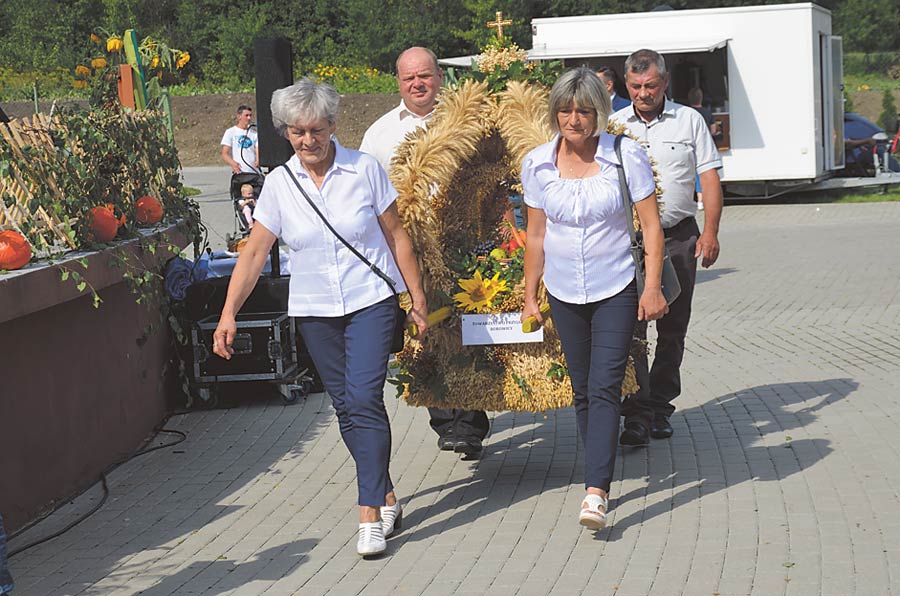 Gospodarze dożynek, w tym wójt Artur Sawa, podzielili się chlebem wypieczonym z tegorocznego zbioru ze wszystkimi zebranymi. Po oficjalnych wystąpieniach na scenie pojawiły się: zespół „Młyn”, „Scena Juno”, kapele: „Łopieńczacy”, „Alternatywy 4” i zespół „Arabeska” z GOK-u w Mirczu. Wieczorna zabawa taneczna odbyła się w rytmach muzyki zespołów „Fox” i „Loverboy”. A na koniec do tańca przygrywał zespół „Monaco”. (red)
