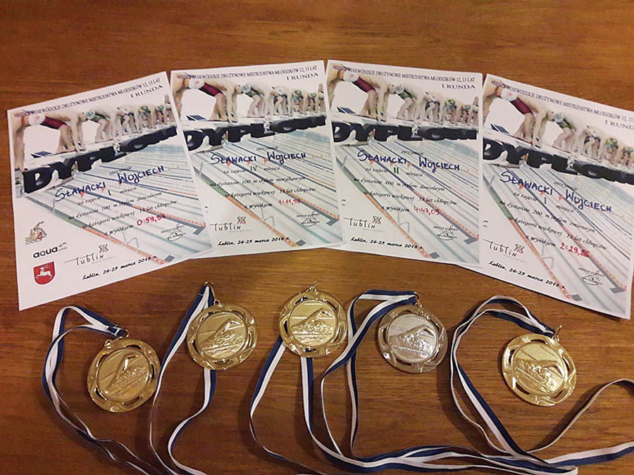 Pięć medali wywalczył podczas pierwszej rundy międzywojewódzkich mistrzostw młodzików w pływaniu Wojciech Sławacki, uczeń ZS nr 5, reprezentujący klub Wodnik Krasnystaw.