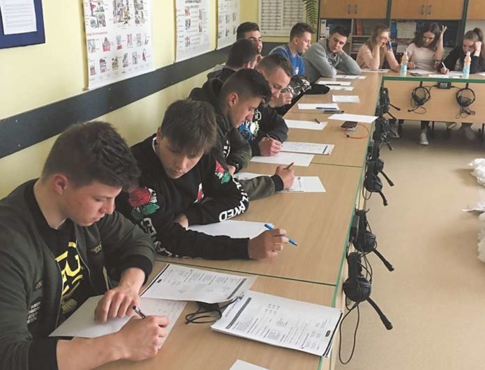Uczniowie klas I i II Technikum Żywienia i Usług Gastronomicznych oraz I i II Technikum Mechanizacji Rolnictwa i Agrotroniki ZSCKR w Siennicy Różanej, wyjeżdżający na praktyki do Sewilli, wzięli udział w lekcjach z podstaw języka hiszpańskiego.