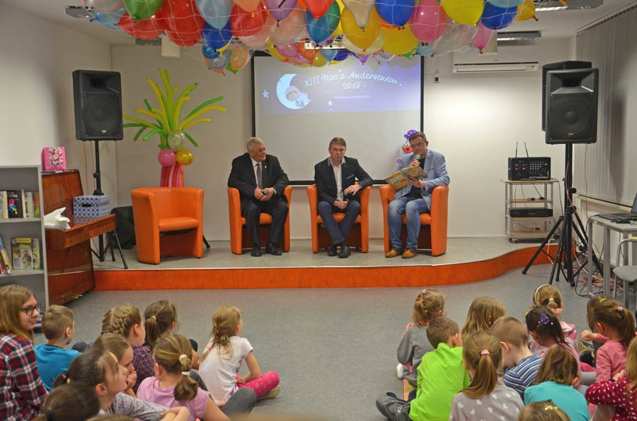 W nocnym czytaniu, wraz z dziećmi, uczestniczyli tym razem m.in.: burmistrz Wiesław Muszyński, przewodniczący RM Tomasz Korzeniewski, wiceprzewodniczący Rady Powiatu Janusz Kloc oraz Izabela Nahuluk, Mateusz Gryglicki i Wiesław Gryglicki ze Stajni Westa, a także Joanna Szymańska ze Specjalnego Ośrodka Szkolno-Wychowawczego i prezes Stowarzyszenia Pomocy Dzieciom Niepełnosprawnym „Lepsze Jutro” Justyna Gajos. Oprócz nocnego czytania na uczestników imprezy czekały także inne atrakcje, m.in.: spektakl przygotowany przez grupę „Świetliki” ze Specjalnego Ośrodka Szkolno-Wychowawczego pt. „Czerwony Kapturek”, spacer do Urzędu Miejskiego, a tam spotkanie z samorządową reprezentacją dzieci, czyli Młodzieżową Radą Miejską, a także oglądanie panoramy Włodawy z ratuszowej wieży. XIII Noc z Andersenem zorganizowali pracownicy Miejskiej Biblioteki Publicznej we Włodawie oraz koordynator lokalny akcji „Cała Polska czyta dzieciom” Bogusława Górska. (a, fot. MBP Włodawa)