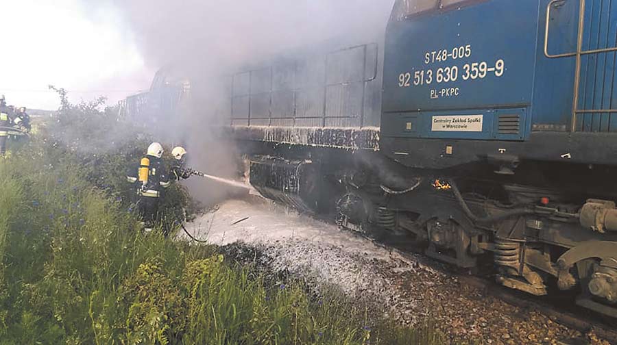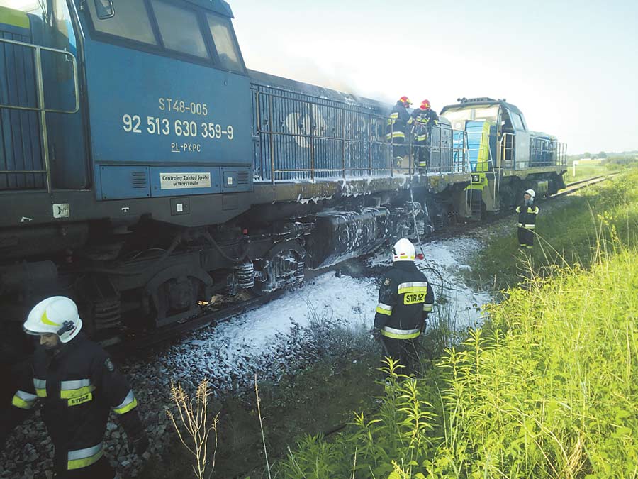 Do zdarzenia doszło w poniedziałek, 10 czerwca, ok. 17.30. – Po przybyciu na miejsce pierwszych zastępów Państwowej Straży Pożarnej w Krasnymstawie pożarem objęta była jedna z dwóch lokomotyw – opowiada mł. kpt. Łukasz Chomczyński. – Ogień obejmował zbiornik z wyciekającym paliwem oraz instalację elektryczną w obrębie silnika.