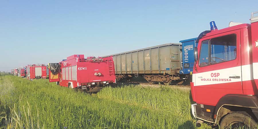 Nietypowa akcja krasnostawskiej straży pożarnej. W Tarzymiechach Trzecich, w gminie Izbica, zapalił się pociąg. Na szczęście towarowy, nie pasażerski.