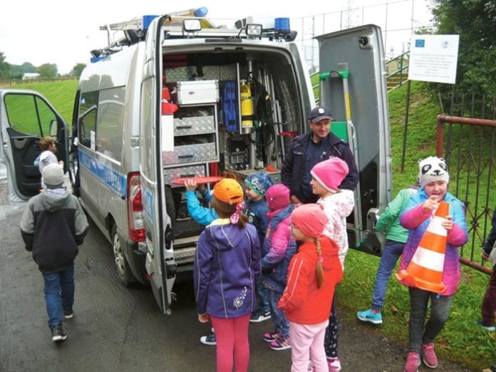 Podczas zajęć poruszano głównie tematykę bezpiecznego poruszania się pieszo po drodze, a także jazdy rowerem. Młodsze dzieci dowiedziały się też, a starsze przypomniały, jak należy zachować się w czasie ataku agresywnego psa. Razem z policjantem ćwiczyły ustawienie dwóch pozycji obronnych ciała – tzw. „żółwia” i „drzewa”. Na zakończenie wszyscy wyszli przed szkołę, gdzie można było zajrzeć do policyjnego radiowozu. (k)