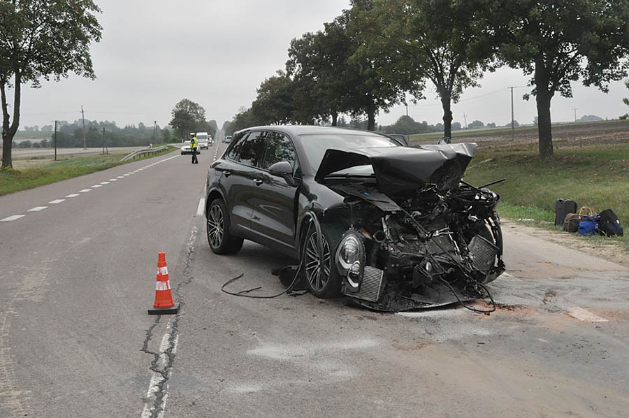 Jak wynika ze wstępnych ustaleń drogówki, 34-letni obywatel Ukrainy, kierujący porsche na litewskich numerach rejestracyjnych, na wysokości Lechówki (gmina Siedliszcze) zaczął wyprzedzać jadącą przed nim ciężarówkę. Tyle że tir, którym kierował 35-letni chełmianin, akurat skręcał w lewo. Porsche z czterema Ukraińcami na pokładzie uderzyło w tył ciężarówki. Kierowcom nic się nie stało, a pasażerowie porsche po badaniach w szpitalu zostali zwolnieni. 34-letni sprawca kolizji został ukarany mandatem. (pc)