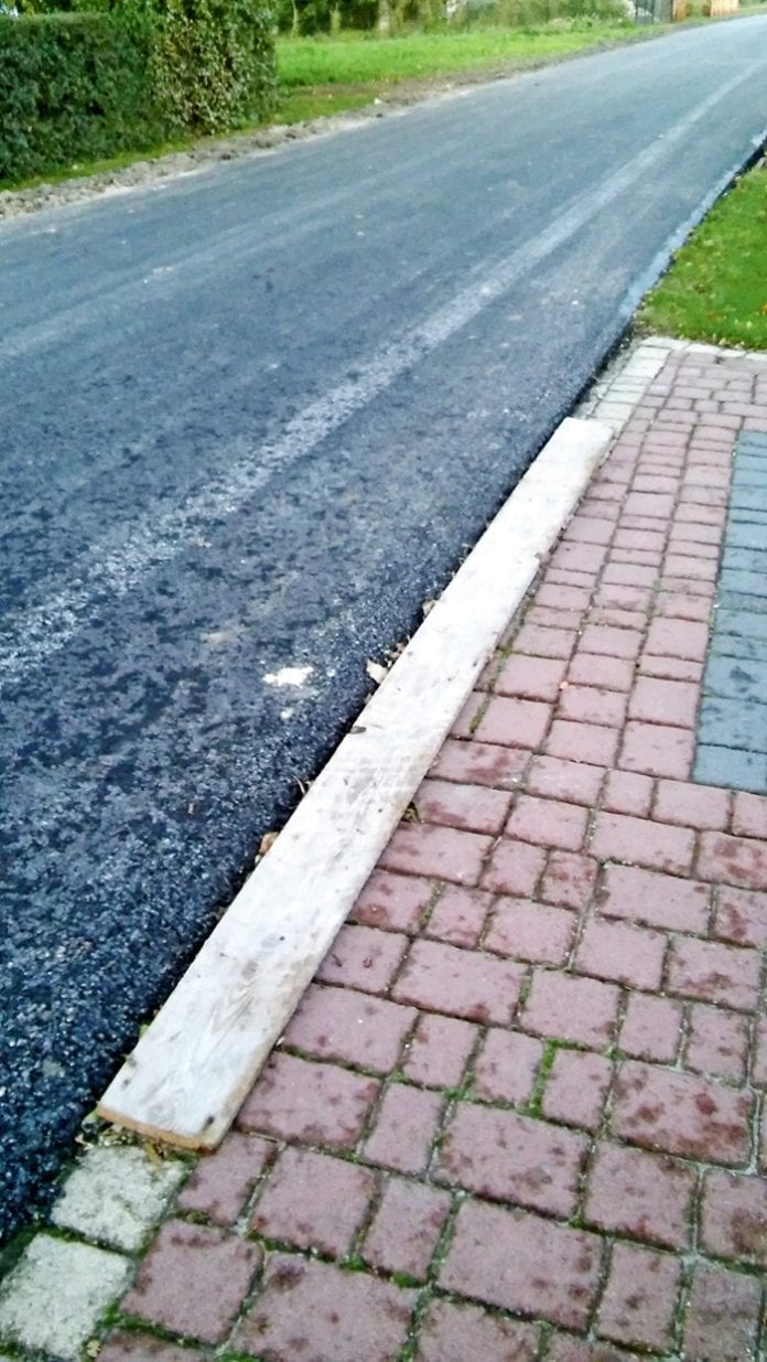 – W gminie chwalą się, jak wiele kilometrów dróg wykonują, ale trzeba też zwracać uwagę na jakość robót – mówi nasz rozmówca. – Na własny koszt podniosłem swój wjazd z kostki brukowej, dostosowując go do wysokości przebudowanej drogi. Nie miałem wyjścia, inaczej woda wciąż spływałaby mi na posesję i dalej przejeżdżałbym po desce, aby nie uszkodzić auta. Pobocze też uporządkowałem sam, żeby móc je potem kosić. Wciąż nie dostałem jednak pisemnej odpowiedzi od urzędników, dlatego przyszedłem do redakcji.