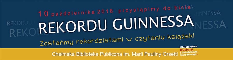 Polacy po książki sięgają coraz rzadziej. Ba – coraz więcej osób bez skrępowania ogłasza, że w ciągu roku nie przeczytały ani jednej. Według danych Biblioteki Narodowej jest ich ponad 20 milionów. Nie dziwi więc to, że książnice stają na przysłowiowych rzęsach, aby zachęcić rodaków do czytania. Czasem w bardzo nietypowy sposób. I taki właśnie proponuje Chełmska Biblioteka Publiczna, która zaprasza do bicia rekordu Guinnessa w ilości osób czytających jeden po drugim. Obecnie wynosi on 3071 osób.