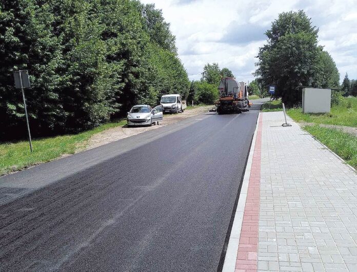 Droga jest przebudowana na odcinku 2630 m, została poszerzona do 6 m. Zbudowano chodniki (dojścia do zatok autobusowych i peronów) – ok. 450 m długości i 2 m szerokości. Powstały 4 zatoki autobusowe i 2 perony. Trwają ostatnie prace wykończeniowe. (pk)