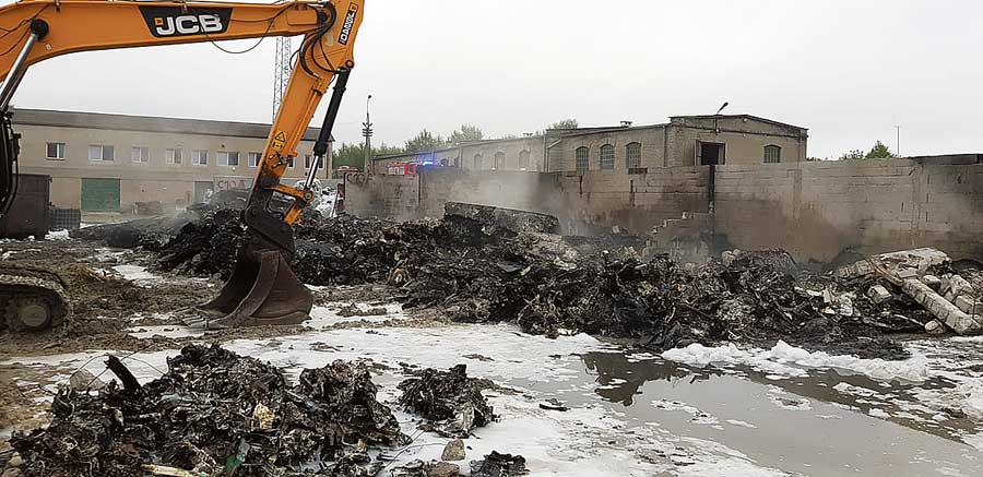 – Po przybyciu jednostek straży pożarnej na miejsce zdarzenia stwierdzono, że pożarem całkowicie objęte są trzy boksy, w których zmagazynowane było około 300 ton odpadów sprasowanych w bele. Akcja gaśnicza była utrudniona z powodu dużego zadymienia oraz braku wydajnej sieci hydrantowej będącej na terenie zakładu – informuje bryg. Wojciech Chudoba, zastępca komendanta miejskiego Państwowej Straży Pożarnej w Chełmie. – Strażacy pracowali w sprzęcie ochrony układu oddechowego (OUO).