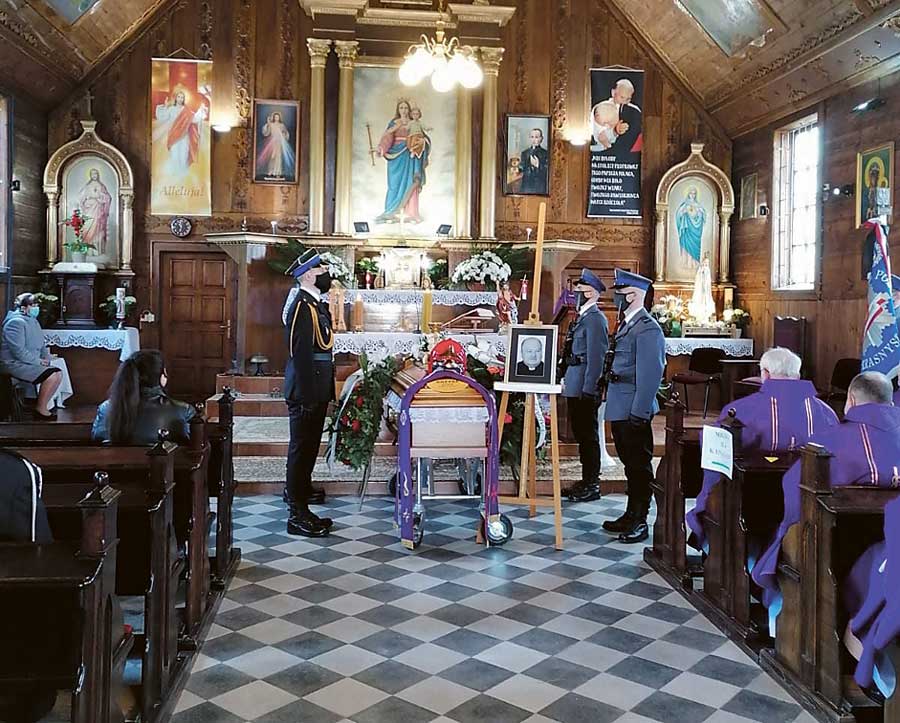 Liturgii pogrzebowej przewodniczył ks. bp Mieczysław Cisło, homilię pogrzebową wygłosił ks. Waldemar Taracha – kapelan strażaków z Łęcznej. Msza św. obyła się z zachowaniem pełnego reżimu sanitarnego. W kościele było tylko 14 osób, pozostali uczestniczyli w liturgii pozostając na zewnątrz. Ciało zostało złożone w grobie rodzinnym na cmentarzu parafialnym w Zamościu. (fot. OSP Rogóźno)