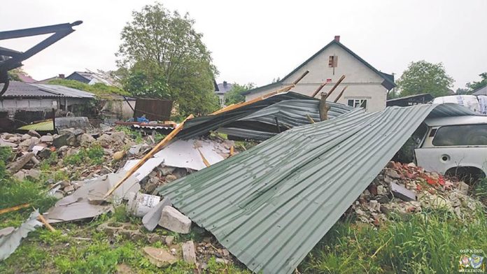 Dzień później wiatr porwał dach z budynku gospodarczego w Kaniem i powalił kolejne kilka drzew w mieście i w powiecie chełmskim. (pc, fot. OSP KSRG Wierzbica)
