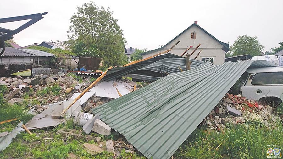 W Henrysinie (gmina Chełm) część dachu spadła z murowanego domu. Strażacy uprzątnęli teren wokół, a górę domostwa zabezpieczyli plandeką, aby do środka nie dostała się woda. Podobne działania prowadzili tego dnia w Wierzbicy, gdzie przez wiatr i deszcz również zerwany został z budynku gospodarczego fragment dachu (tym razem blaszany). Spadając na sąsiednią posesję, uszkodził on elewacje pobliskich budynków. Na szczęście nikomu nic się nie stało. Z uwagi na brak bezpiecznego wejścia na dach, po drabinie strażacy dostali się na górę i zabezpieczyli ją przed burzą, a następnie oczyścili okolicę.