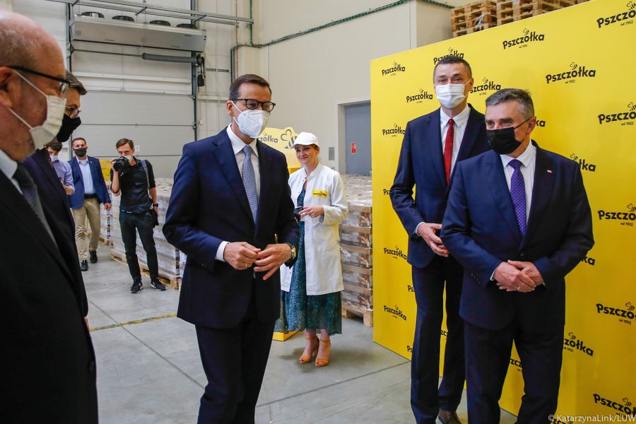 Ze Świdnika premier udał się do Fabryki Cukierków „Pszczółka”. Mateusz Morawiecki nie szczędził pochwał pod adresem lubelskiej firmy, której słodycze można znaleźć na sklepowych półkach m.in. w kilkudziesięciu krajach na świecie w tym w USA, Rosji, Jordanii, Niemczech, Łotwie, Kanadzie czy Chinach. – W ramach Polskiego Ładu ta firma skorzystała ze wsparcia w postaci tarczy finansowej i udało się przechować jej wartość.