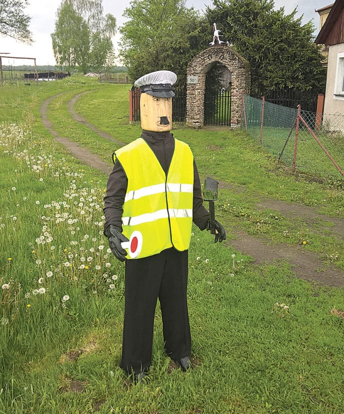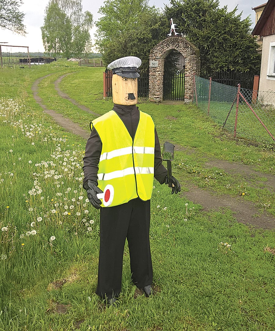 W Sobiborze (gm. Włodawa) od dwóch tygodniu stoi kukła do złudzenia przypominająca policjanta. Drewniana postać ma czarne spodnie, marynarkę, rękawiczki, kamizelkę odblaskową, na głowie białą czapkę, a w dłoniach trzyma lizak i suszarkę. Jak mówi sołtys wsi Mirosław Fajks, atrapę policjanta wykonał człowiek, który interesuje się rękodziełem. Rolą figury nie jest tylko prewencja (miejscowi kierowcy już się przyzwyczaili), ale i zapewnienie miejscowości dodatkowej atrakcji. (b)