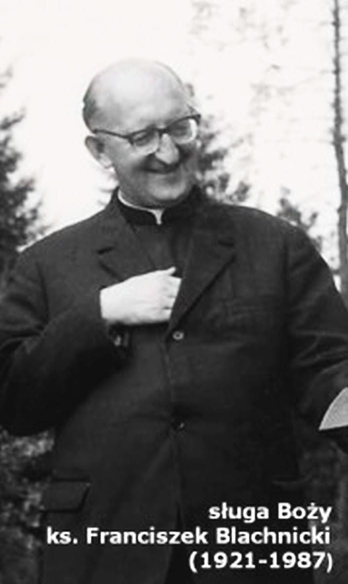 Po zakończeniu II wojny światowej wstąpił do Śląskiego Seminarium Duchownego w Krakowie. W 1950 r. otrzymał święcenia kapłańskie. W 1954 r. odbyły się pierwsze rekolekcje Oazy Dzieci Bożych. W roku 1957 zorganizował społeczną inicjatywę przeciwalkoholową – Krucjatę Wstrzemięźliwości. W jej działalność zaangażowało się około tysiąca kapłanów i ponad sto tysięcy ludzi świeckich. Było to nie na rękę komunistycznym władzom i w 1960 r. Krucjata została zlikwidowana, a kilka miesięcy potem w marcu 1961 roku ks. Franciszek został aresztowany pod zarzutem wydawania nielegalnych druków i „ rozpowszechniania fałszywych wiadomości o rzekomym prześladowaniu Kościoła w Polsce”. Cztery miesiące spędził w areszcie w Katowicach, tym samym, w którym więzili go gestapowcy. Został skazany na 13 miesięcy więzienia w zawieszeniu na 3 lata. W październiku tego samego roku podjął studia na KUL. Od roku 1963 zaczął działać tzw. ruch oazowy, który potem rozwinął się, jako Ruch Światło-Życie. Była to metoda 15-dniowych rekolekcji dla różnych grup młodzieży, a także dorosłych i całych rodzin. Ogłoszenie stanu wojennego zastało ks. Blachnickiego w Rzymie. Nie mógł wrócić do kraju, gdyż był poszukiwany listem gończym. W 1982 r. zamieszkał w polskim ośrodku Marianum w Carlsbergu. Był animatorem Międzynarodowego Centrum Ewangelizacji Światło-Życie. Założył też Chrześcijańską Służbę Wyzwolenia Narodów dla narodów Europy Wschodniej, walczących o wyzwolenie spod reżimów komunistycznych. Zmarł nagle w 1987 r. Pośmiertnie został odznaczony w 1994 r. Krzyżem Komandorskim Orderu Odrodzenia Polski, a w 1995 r. Krzyżem Oświęcimskim. Oficjalnie poinformowano, że przyczyną śmierci był zator płucny. Dopiero wyniki śledztwa prowadzonego przez IPN w latach 2001-2005 wykazały, że ks. Franciszek był inwigilowany przez Służbę Bezpieczeństwa i zmarł prawdopodobnie wskutek otrucia. W tej sprawie katowicki oddział IPN wszczął dochodzenie w 2005 r. Doczesne szczątki księdza Blachnickiego zostały w kwietniu 2000 r. przywiezione do Krościenka i złożone w dolnej kaplicy kościoła pw. Chrystusa Dobrego Pasterza. W październiku 2014 r. Komisja Teologów w Rzymie uznała jednomyślnie heroiczność cnót Sługi Bożego ks. Franciszka Blachnickiego, co potwierdził 1 października 2015 r. papież Franciszek, promulgując dekret o heroiczności jego cnót. Elżbieta Kasprzycka