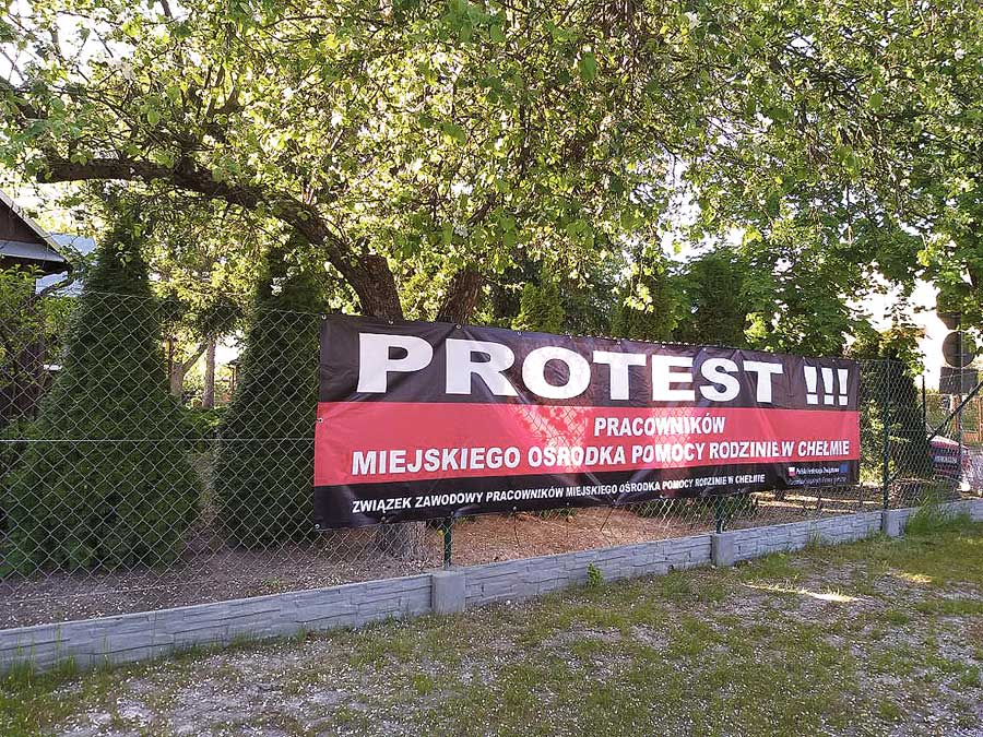 W Miejskim Ośrodku Pomocy Rodzinie w Chełmie trwa już nie tylko spór zbiorowy z domagającymi się podwyżek związkowcami. Po bezowocnych rozmowach z udziałem mediatora pracownicy rozpoczęli protest. Przed wejściem do MOPR wywieszono wielkie informujące o tym banery, a w piątek wszyscy pracownicy solidarnie założyli czerwono-czarne przypinki na znak protestu.