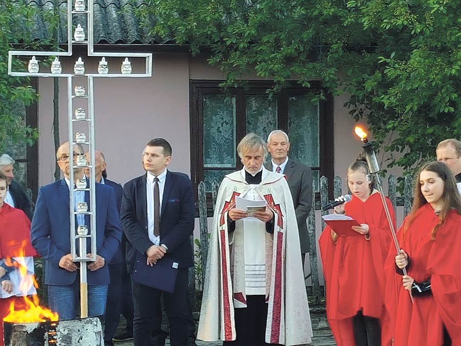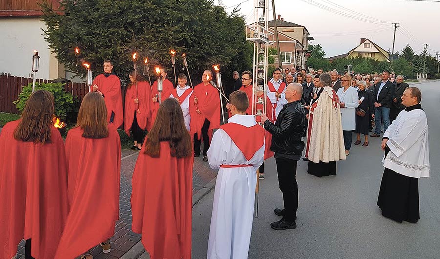 W modlitewnej procesji, w której wierni nieśli płonące świece, a której przewodził świetlisty krzyż, płonący paschał oraz figura Zmartwychwstałego Chrystusa, podążali miejscowi kapłani: ks. proboszcz Andrzej Doliński i ks. Tomasz Makara oraz gość ks. Stefan Misa. Po nabożeństwie uczestnicy Drogi Światła zaproszeni zostali na poczęstunek przygotowany przez mieszkańców ulic Krótkiej i Chuteckiej. Nad bezpieczeństwem uczestników czuwali strażacy z OSP w Sawinie. (reb)