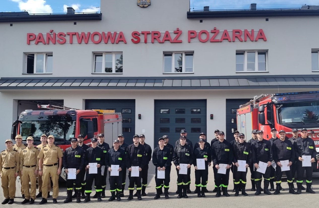 – Kurs rozpoczął się w 28 lipca br. i obejmował naukę zdalną oraz intensywne zajęcia praktyczne. Uczestnicy pod okiem kierownika kursu bryg. Tomasza Ważnego i jego zastępcy st. kpt. Radosława Gajuka zdobyli niezbędną wiedzę i umiejętności do udziału w akcjach ratowniczo-gaśniczych, technicznych, obsługi sprzętu, łączności oraz współpracy z Lotniczym Pogotowiem Ratunkowym –  mówi ogniomistrz Damian Misiura z KM PSP w Chełmie. – Ważnym etapem szkolenia było także zaliczenie testu w komorze dymowej w Ośrodku Szkolenia KW PSP w Lublinie.