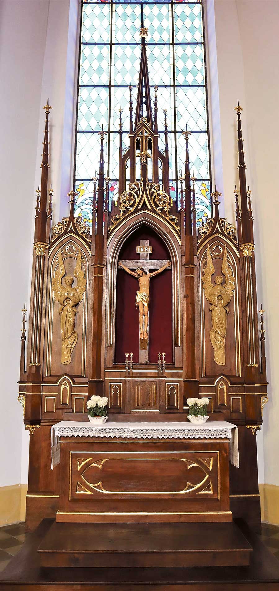 Zakres prac konserwatorskich przy architekturze ołtarzy obejmował m.in.: usunięcie wtórnych nawarstwień, zabezpieczenie drewna przed działaniem szkodników drewna, sklejenie pęknięć i odspojeń, uzupełnienie ubytków drewna poprzez flekowanie i kitowanie, rekonstrukcję brakujących elementów snycerskich i rzeźbiarskich. Uzupełniono też ubytki gruntów w partiach złoceń, zrekonstruowano złocenia, przeprowadzono też scalenie kolorystyczne fleków i przebarwień powierzchni drewna.