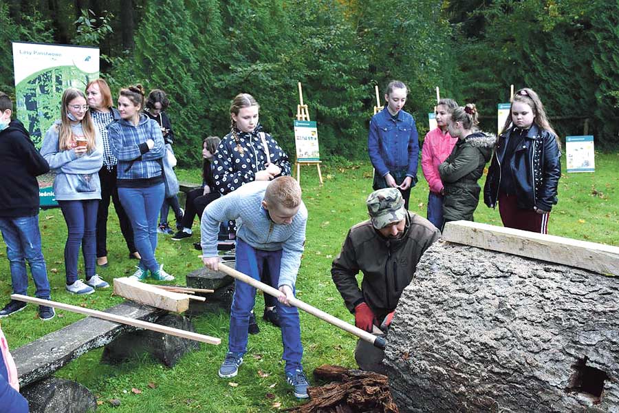 Uczestnicy warsztatów, z pomocą pracowników Nadleśnictwa Janów Lubelski, mogli też spróbować swoich sił w drążeniu kłody bartnej, która oznaczona została inicjałami najmłodszych finalistek. Udostępniono też różnego rodzaju akcesoria pszczelarskie, które dzieci mogły obejrzeć lub przymierzyć (np. kapelusz czy kombinezon pszczelarski). W warsztatach wziął też udział starosta krasnostawski Andrzej Leńczuk. (k)
