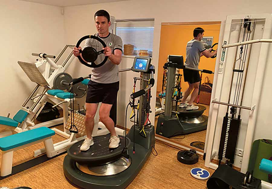 Wykonywanie specjalnych ćwiczeń ukierunkowanych na ten właśnie obszar jest więc szczególnie wskazane. Ponadto liczy się ogólna wytrzymałość organizmu, dlatego idealny trening powinien zawierać elementy jazdy na rowerze, biegów długodystansowych, wiosłowania lub ćwiczeń z niewielkim ciężarem, ale dużą liczbą powtórzeń, a także ćwiczeń zwiększających stabilność i zwinność, co jest ważne dla zachowania kontroli i refleksu podczas rajdu. Duże znaczenie mają również treningi na siłowni, które wzmacniają mięśnie. Dobrym pomysłem są także ćwiczenia gimnastyczne lub gra w tenisa stołowego. Wiele z tych elementów można realizować, pozostając w domu.