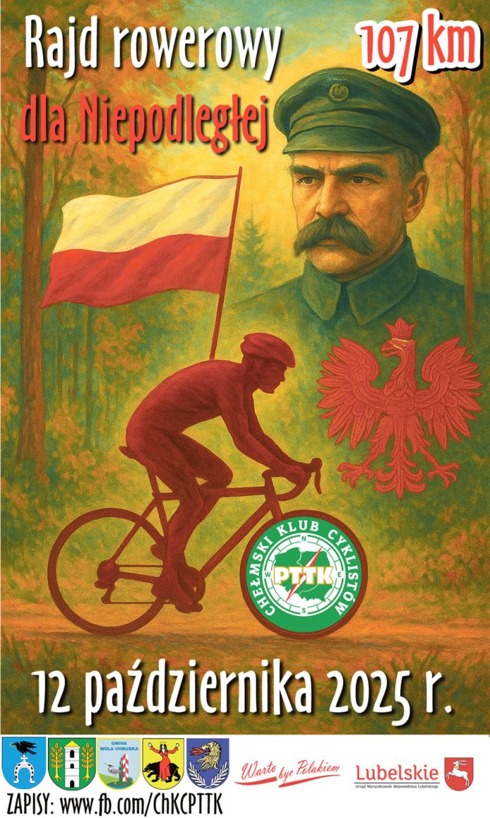 Chełmski Klub Cyklistów PTTK zaprasza do udziału w wyjątkowym Rajdzie Rowerowym „107 km dla Niepodległej”, który odbędzie się 12 października 2025 r. (niedziela) z okazji 107. rocznicy odzyskania niepodległości przez Polskę. Wydarzenie wpisuje się w program „Warto być Polakiem”, którego celem jest wzmocnienie świadomości obywatelskiej, kształtowanie postaw patriotycznych oraz budowanie tożsamości współczesnego Polaka w oparciu o wzorce z przeszłości.
