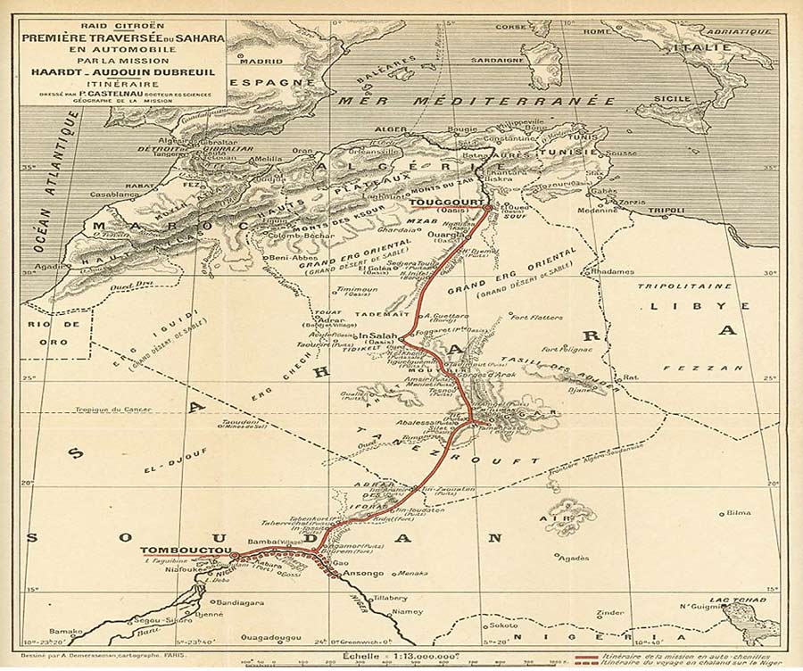 Wyprawa rozpoczęła się 22 grudnia 1922 roku w Tukkurcie (Touggourt), mieście leżącym w algierskiej prowincji Al-Wad niedaleko granicy z Tunezją, a zakończyła 37 dni później, 7 stycznia 1923 roku w Timbuktu (dziś to teren Mali). Do pokonania było 3200 km.