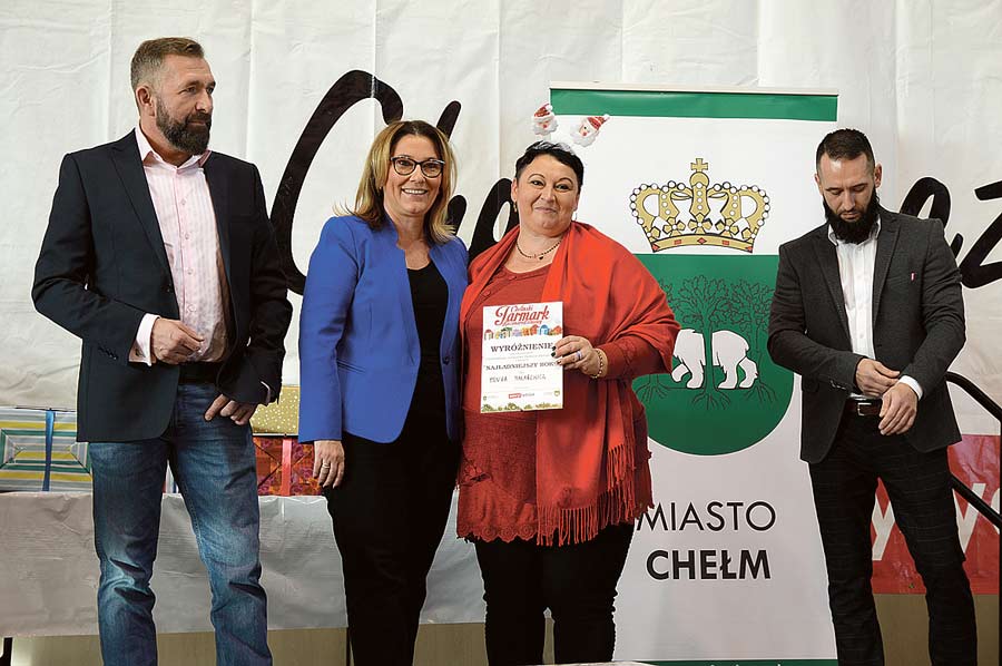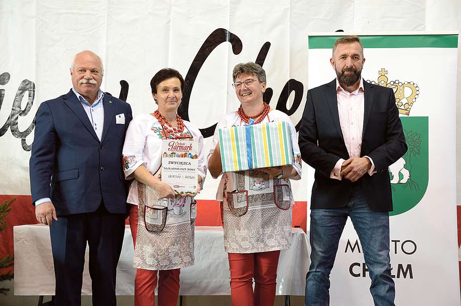 Zdzisław Szwed – członek zarządu województwa lubelskiego wręczył nagrody: w kat. świąteczne ciastko – KGW Morowe Babki (za sękacz), w kat. świąteczna potrawa – KGW Piaskowe Babeczki (za pasztet), w kat. najładniejszy boks – Centrum Nauki i Biznesu Żak. Piotr Deniszczuk, starosta chełmski, nagrodził: w kat. świąteczne ciasto – KGW Majdan Leśniowski (za piernik), w kat. świąteczna potrawa – KGW Kobyle (za gołąbki z kaszą), w kat. ozdoba świąteczna – SP w Sielcu, w kat. najładniejszy boks – Annę Jędruszak oraz stowarzyszenie Kreatywni i Aktywni. (kg, fot. Karol Garbacz i SR)