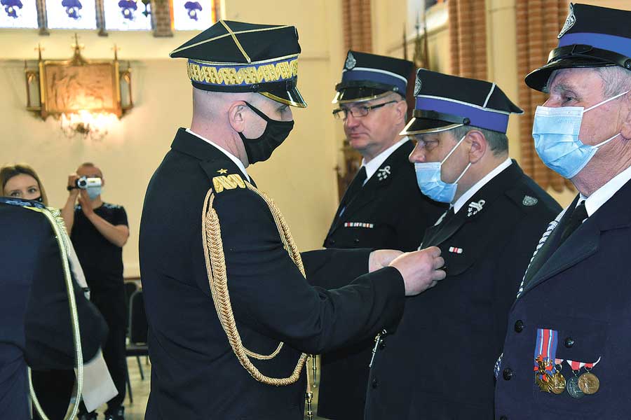 Podczas uroczystości komendant wojewódzki wraz z kapelanem wojewódzkim oraz prezesem OSP z Międzybrodzia Żywieckiego wręczyli medale: Złoty Krzyż Zasługi Orderu Świętego Floriana dla druha Józefa Sysy oraz Srebrne Krzyże Zasługi Orderu Świętego Floriana dla druha Dariusza Nawrockiego oraz Witolda Boruczenko. (k)