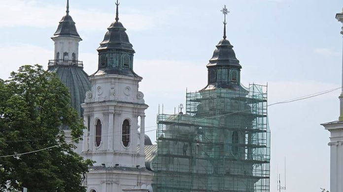 Trwa remont elewacji bazyliki NNMP. Wymieniane są stare, zwietrzałe tynki frontowej ściany świątyni.
