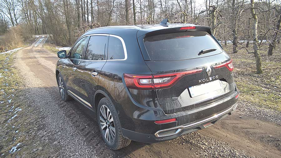 Koleosa łączy więc wiele charakterystycznych cech ze swoimi mniejszymi braćmi. Są to pas przedni z wielkim emblematem Renault pośrodku, wąskie i szerokie reflektory oraz tylne lampy sięgające niemal środka klapy bagażnika. Koleos jest dużym samochodem i swoimi rozmiarami budzi respekt. Uwagę przyciąga nie krzykliwymi elementami, ale prostymi, klasycznymi kształtami oraz kuszącymi zaokrągleniami, które razem tworzą naprawdę ładną kompozycję.