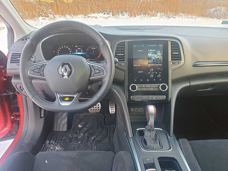 Mamy tu wielki, ponad 9-calowy wyświetlacz wkomponowany w ogromny, zupełnie płaski panel, którego dolną część uzupełniają pokrętła i przyciski sterowania dwustrefową, automatyczną klimatyzacją i nawiewami. Kolejną rzeczą, za którą trzeba pochwalić Francuzów z Renault, są wirtualne zegary. Są bardzo czytelne, można zmieniać ich wygląd, a bezpieczeństwo jazdy poprawia wyświetlacz head-up wysuwający się z deski rozdzielczej po uruchomieniu silnika. O ile przestrzeni w pierwszym rzędzie foteli jest mnóstwo, o tyle z tyłu pasażerowie o wzroście przekraczającym 185 cm będą narzekać na brak miejsca na stopy i dość płasko wyprofilowane siedzisko kanapy. Bagażnik Megane ma pojemność 402 litrów i regularne kształty, choć dostęp do jego głębszej części utrudnia wysoki próg.