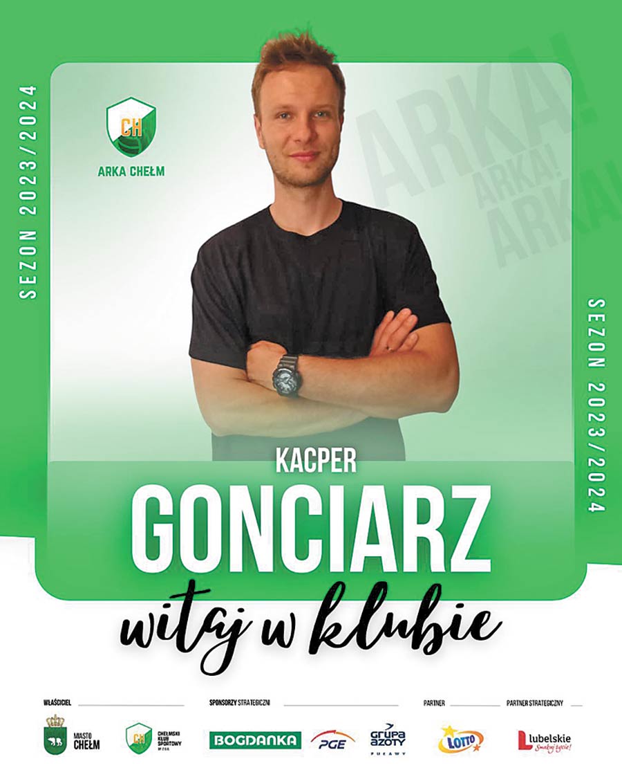 Warto zauważyć, że przez ostatnie dwa lata Sas szlifował swoje umiejętności w najwyższej siatkarskiej lidze w Polsce. Piątym z nowych zawodników ChKS jest Kacper Gonciarz (rocznik 1993), rozgrywający, mający 192 cm wzrostu. Jego dotychczasowa kariera przebiegała w następujący sposób: 2008-2011 – SMS PZPS Spała, 2011-2013 – Czarni Radom, 2013-2016 – Ślepsk Suwałki, 2016-2017 – Czarni Radom, 2017-2021 – Ślepsk Suwałki, 2021-2023- MKS Będzin. Gonciarz to najlepszy rozgrywający mistrzostw Polski kadetów (2009 r.) i najlepszy rozgrywający mistrzostw Polski juniorów (2010 r. i 2011 r.). Zapewne to nie koniec zmian kadrowych w Arce. O kolejnych będziemy informować. (kg, fot. Arka Chełm).