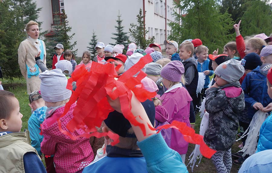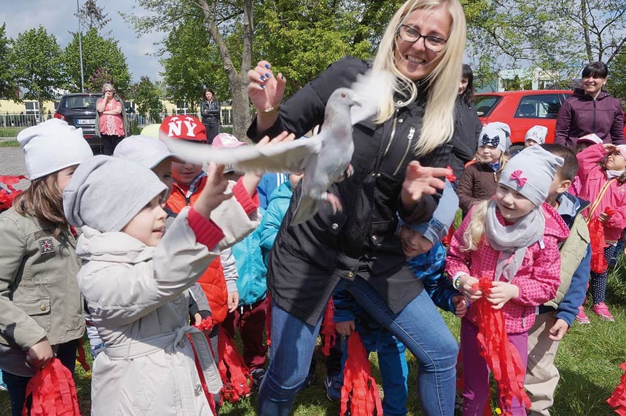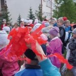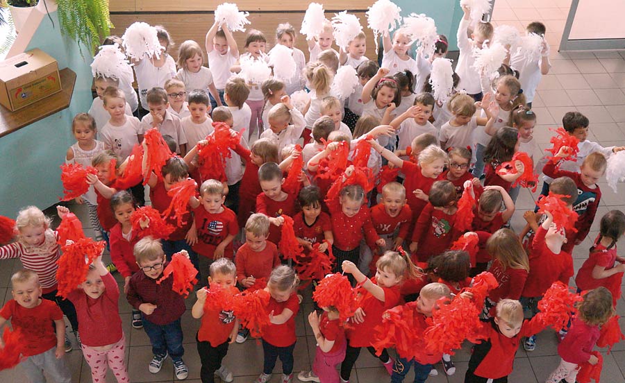 Po zapoznaniu i utrwaleniu symboli tj. godła, flagi i hymnu, maluchy ubrane w biało-czerwone koszulki wykonały „żywą flagę”, a dla uczczenia uroczystości wypuszczono gołąbki. Dzień ten dla maluchów był wspaniałą lekcją patriotyzmu. (-)